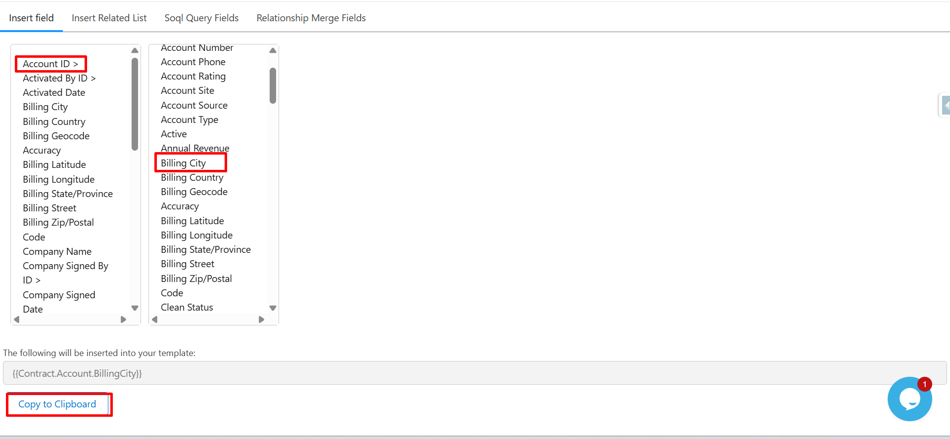 Step 10: Next, click on Billing City, then click on Copy to clipboard.