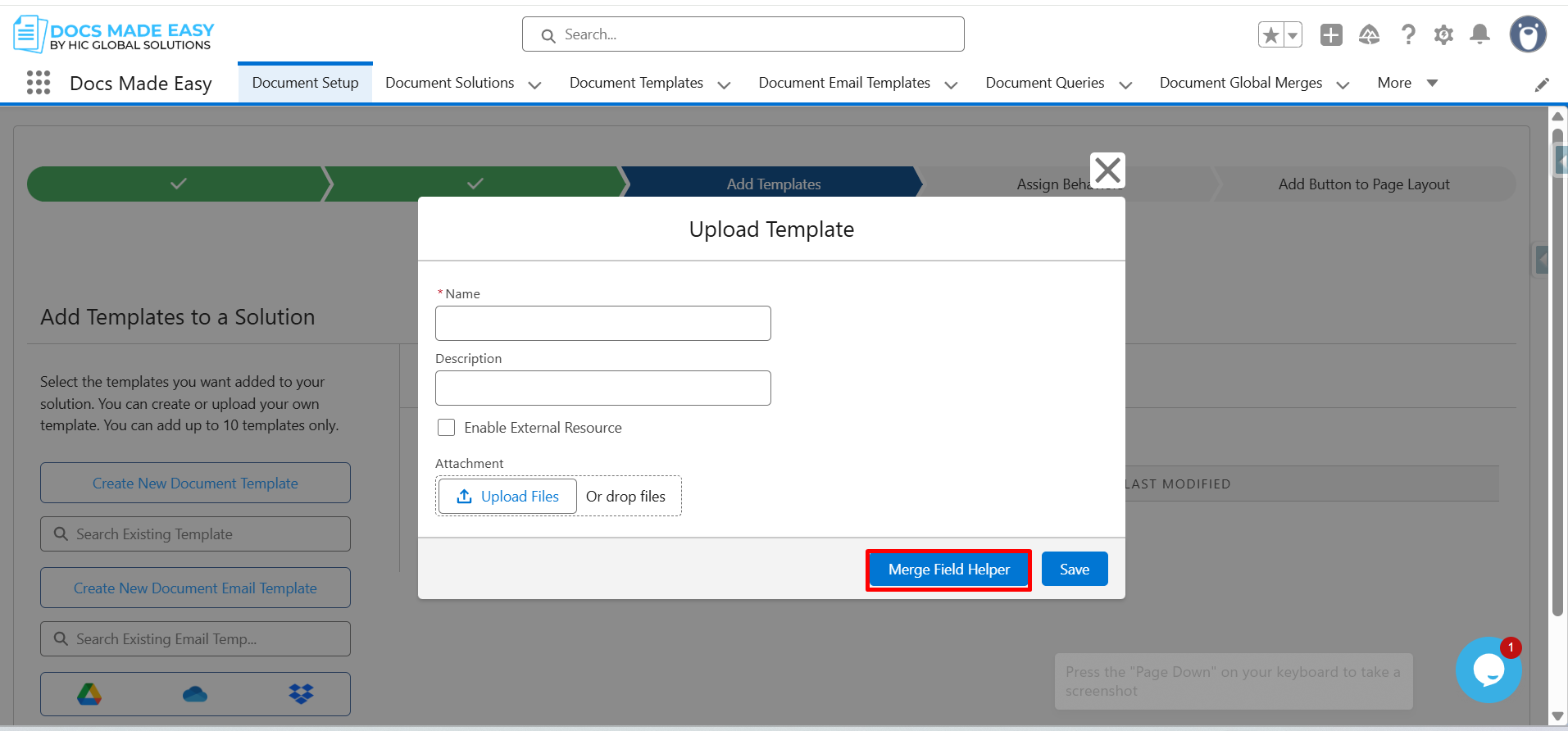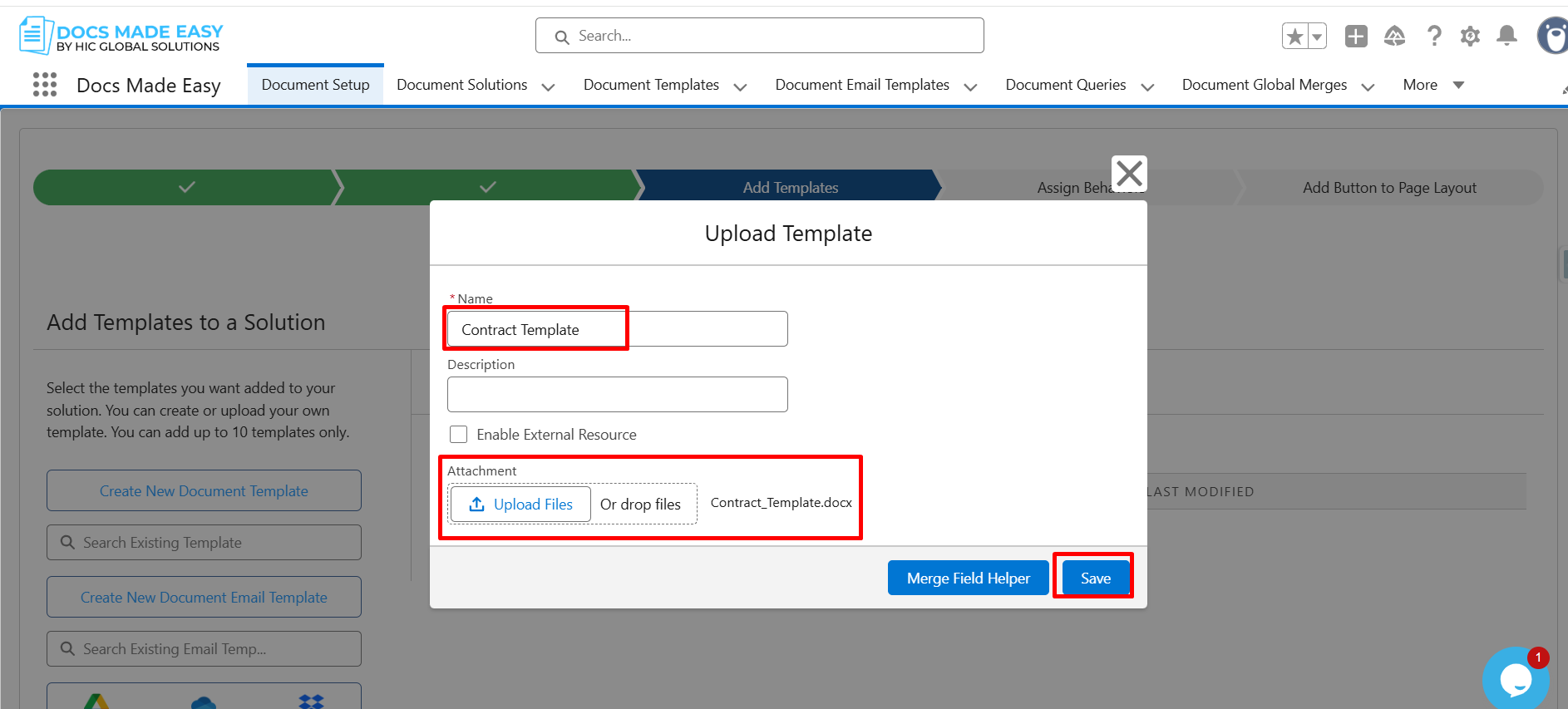 Step 14:Â Open the Upload Template window, enter the Template Name, upload the Template file, and click Save.
