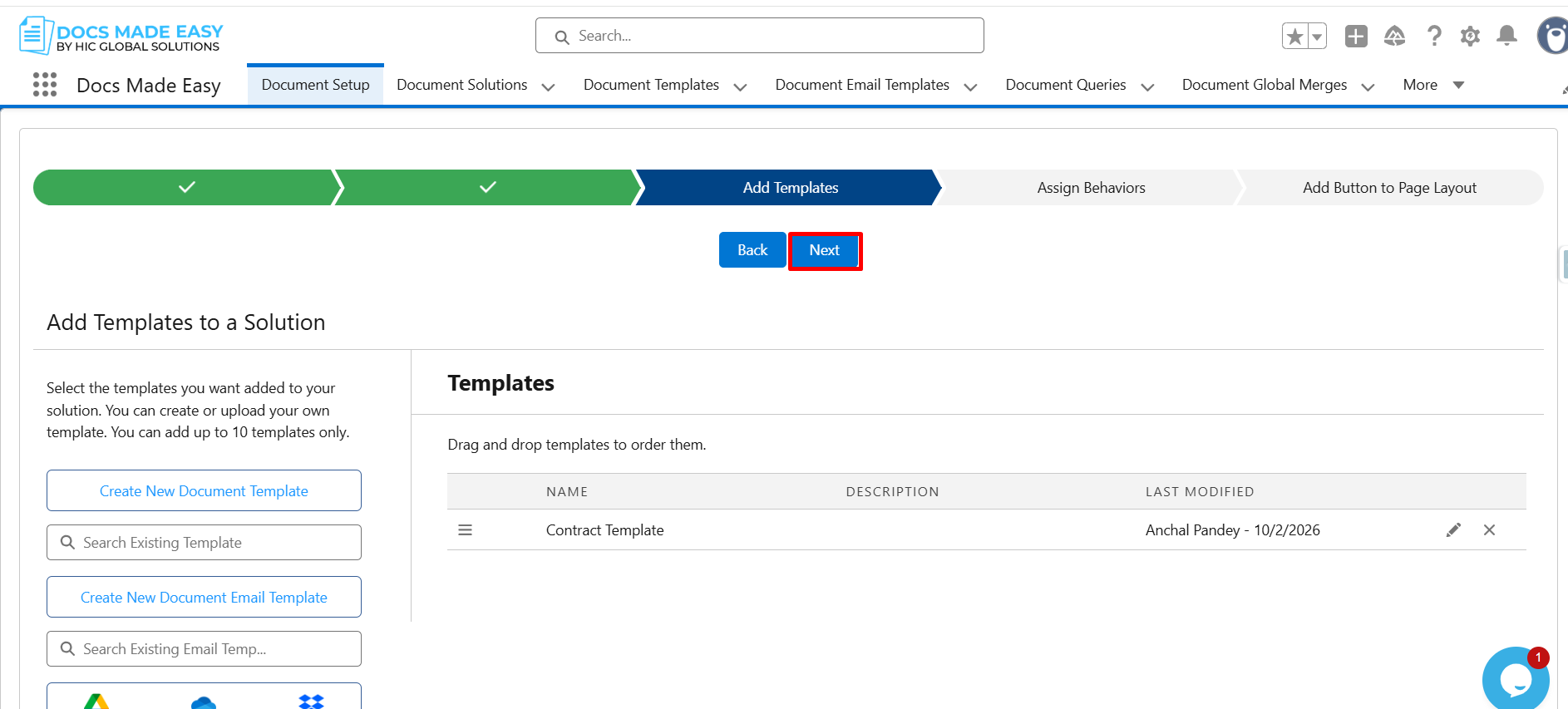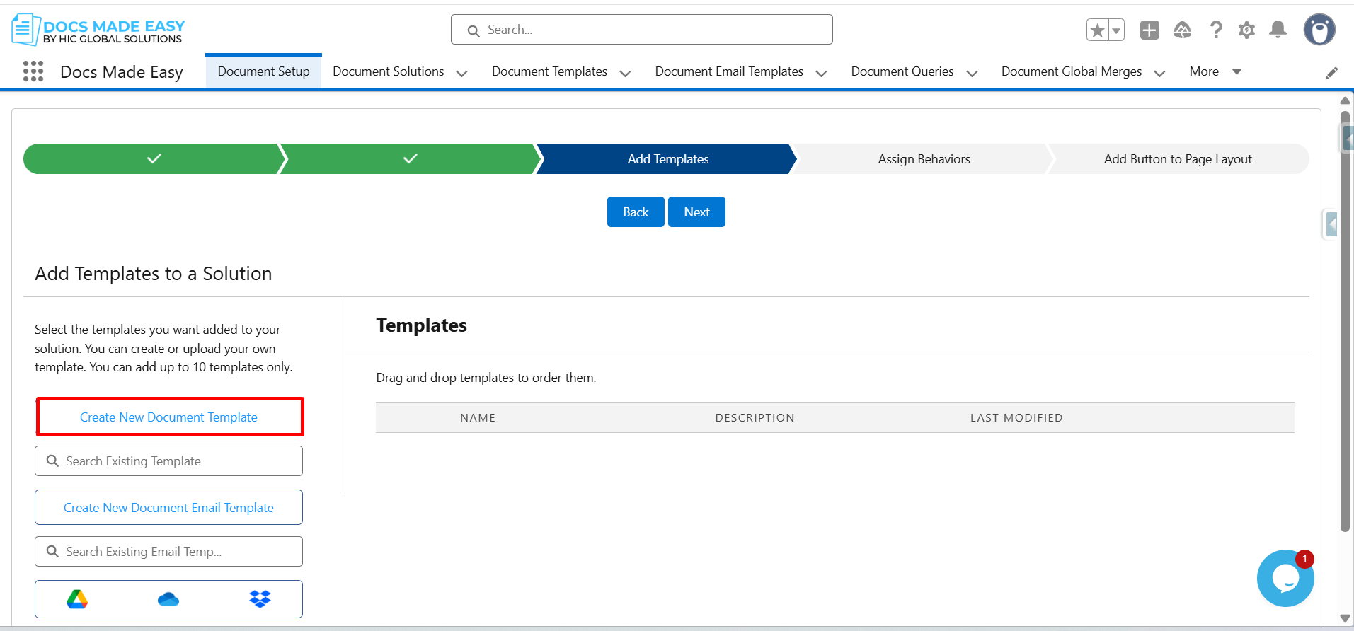 Step 6: Click on Create New Document Template.