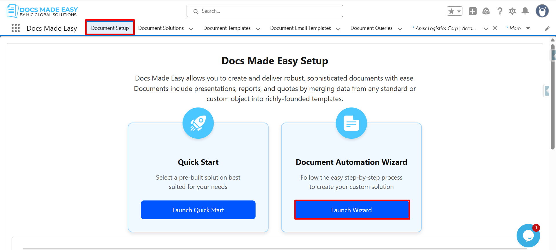 Step 3: Next, click on Document Setup and then click on Launch Wizard to start the process.