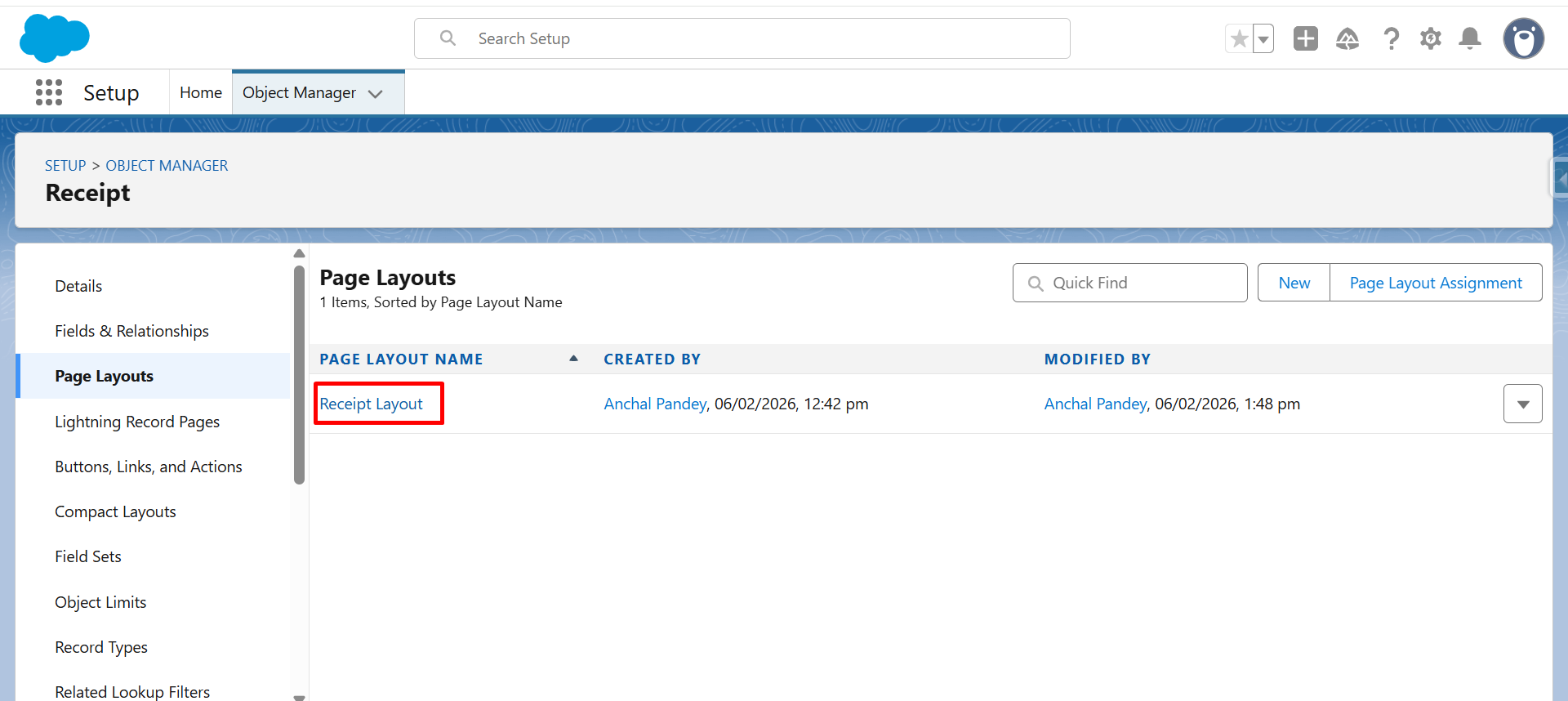 Step 16: Now, Go to Page Layout in the Salesforce setup.
