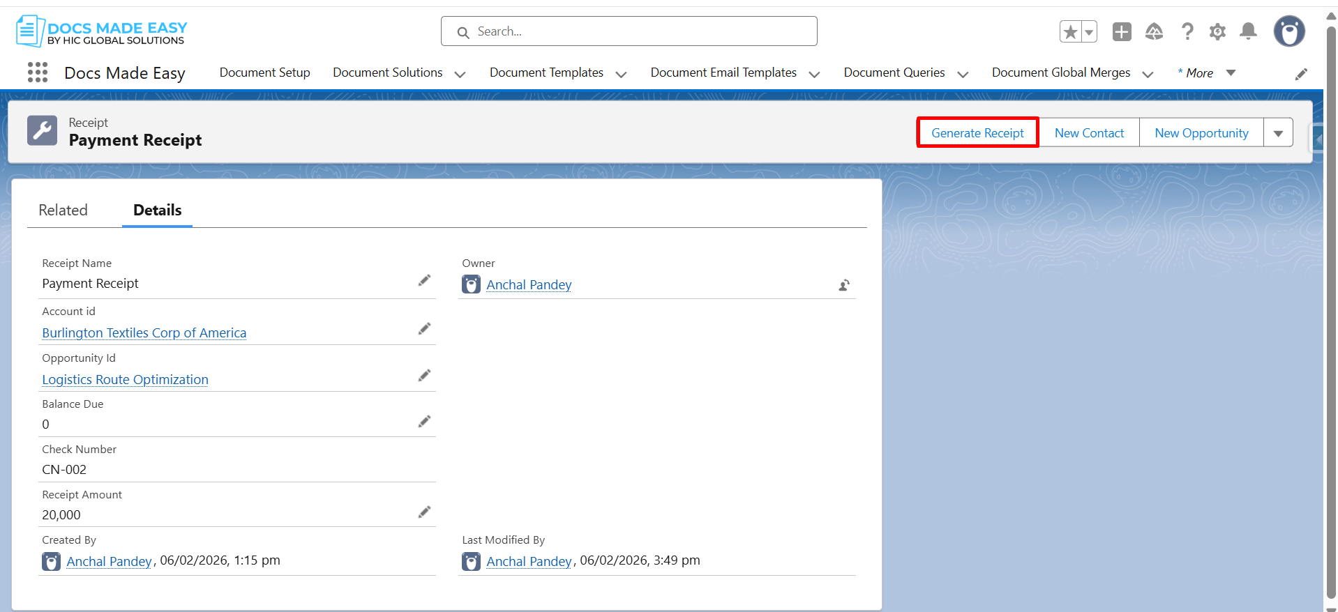 With Docs Made Easy, data is pulled directly from Salesforce records, ensuring accurate, real-time information in every generated receipt.