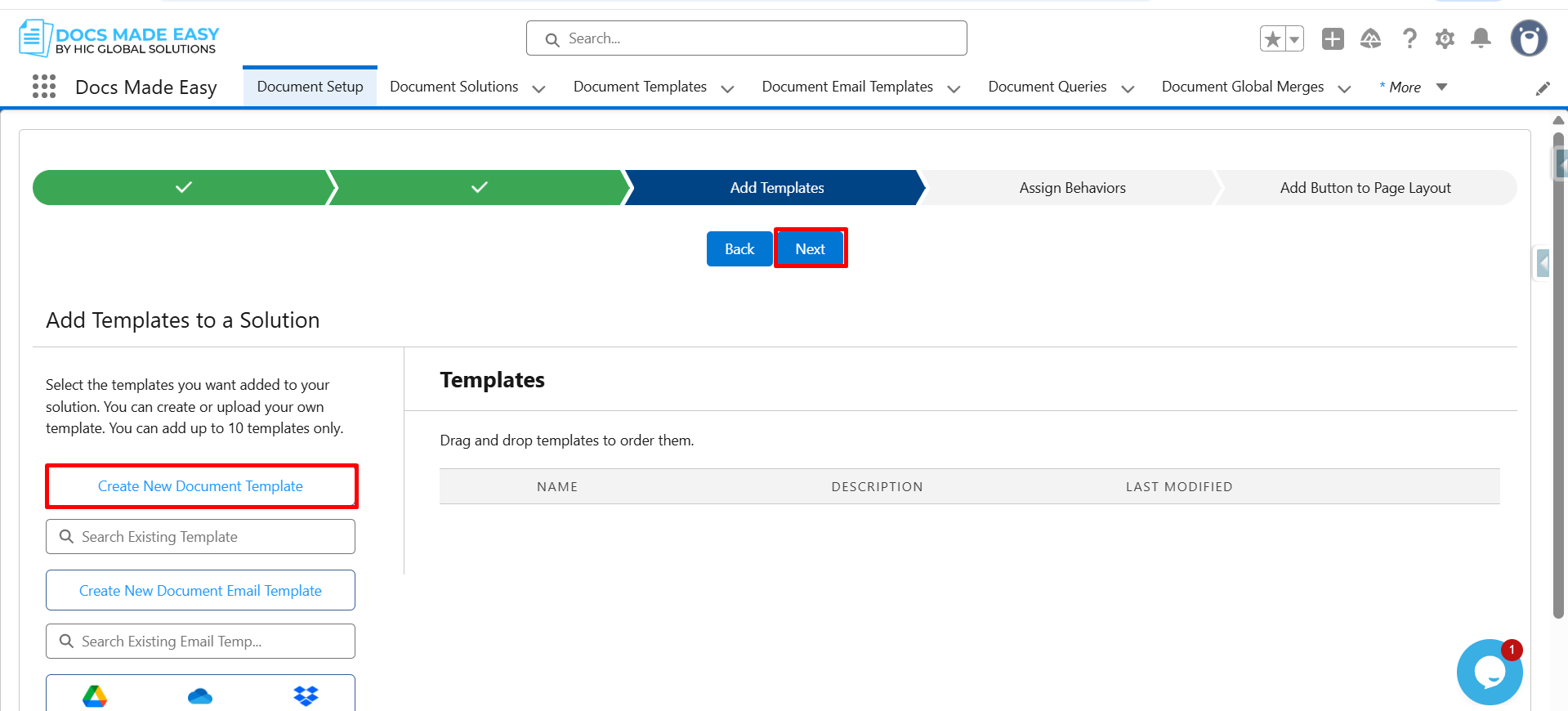 Step 6: Again, click on Next to move to the template configuration section.