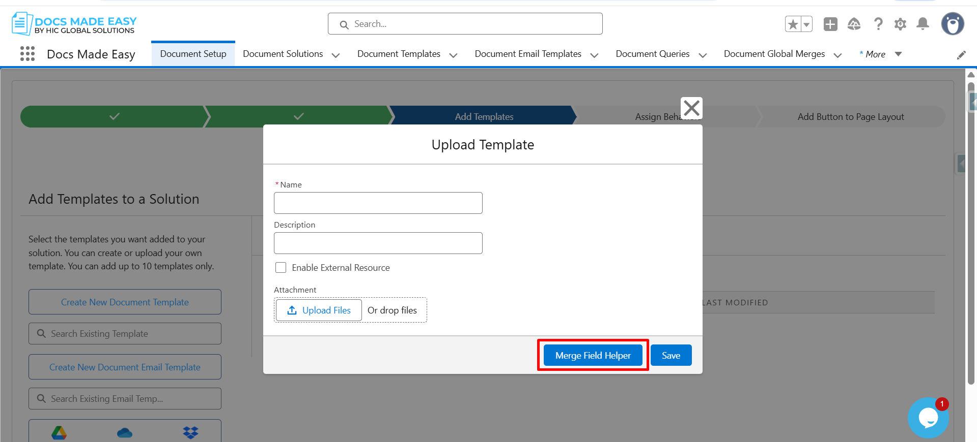 Step 7: Now, open the Merge Field Helper so you can insert dynamic fields into your template.