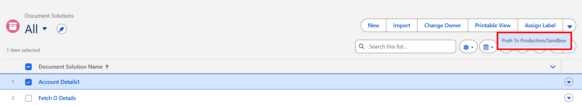 Step 10: After selecting the records, click on the “Push to Production/Sandbox” button available at the top-right corner.