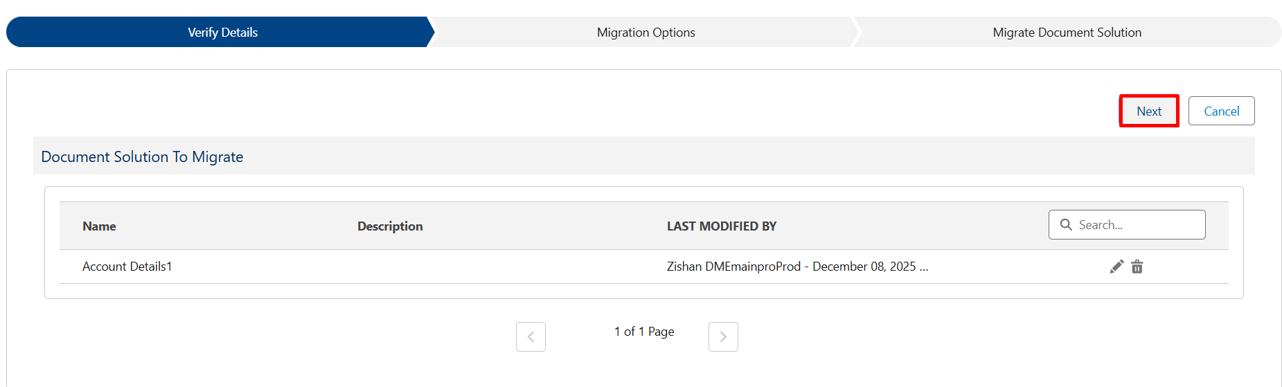 Step 11: On the Verify Details page, review the selected document solutions carefully and click “Next” to continue.