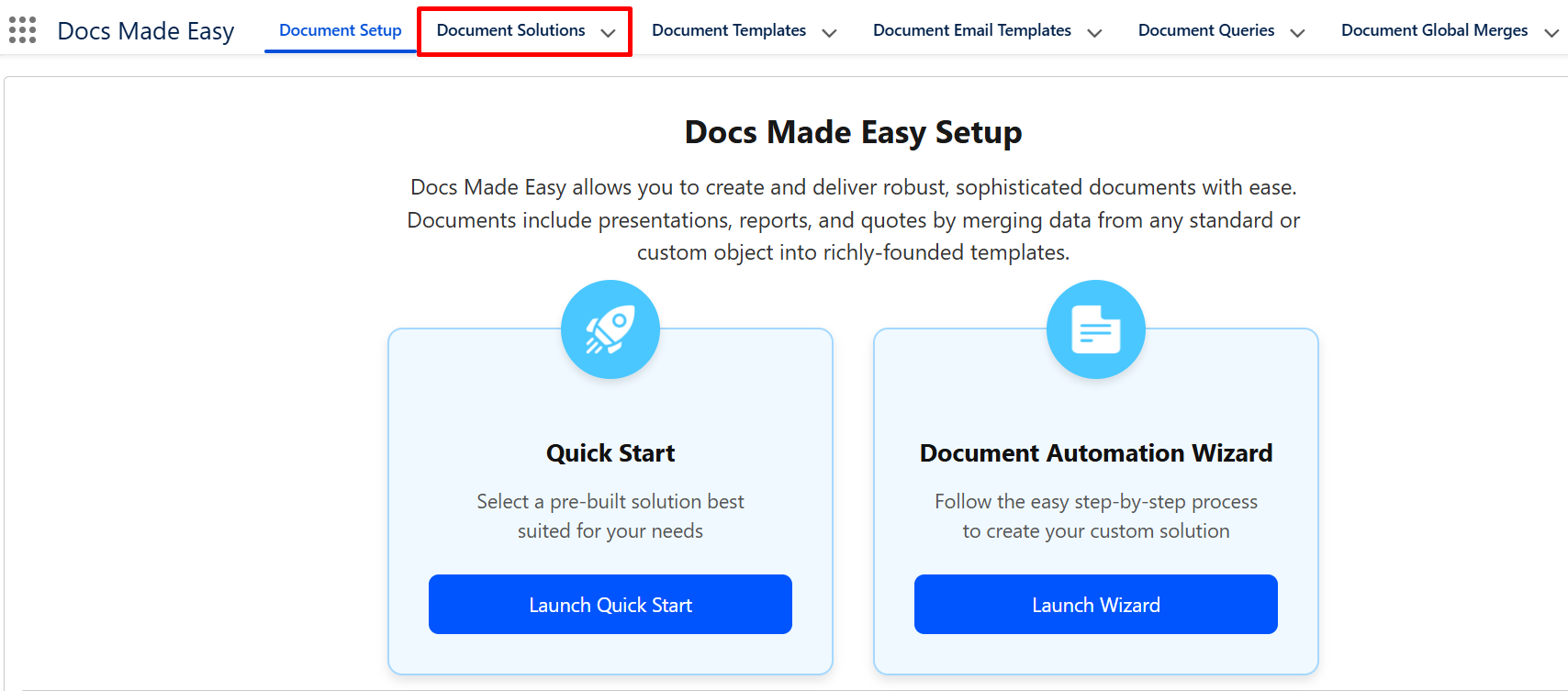 Step 8: Now move back to the “Document Solution” object, either from the Docs Made Easy app or through the App Launcher.